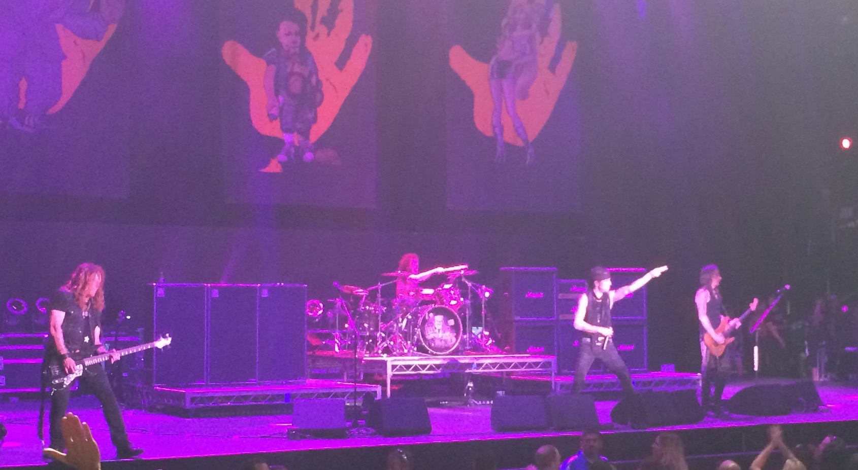 We took our seats about halfway through Bullet Boys. They sounded pretty good, as did Trixter, who we listened to from afar. The stage had a most ingenious set-up…it was revolving so that as one band finished the stage twirled around and the next band [almost always] immediately started.