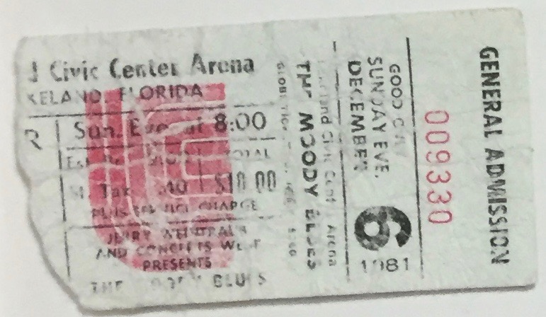 The Moody Blues on 12-6-1981 at the Lakeland Civic Center Arena in Lakeland, Florida. Cost $10.