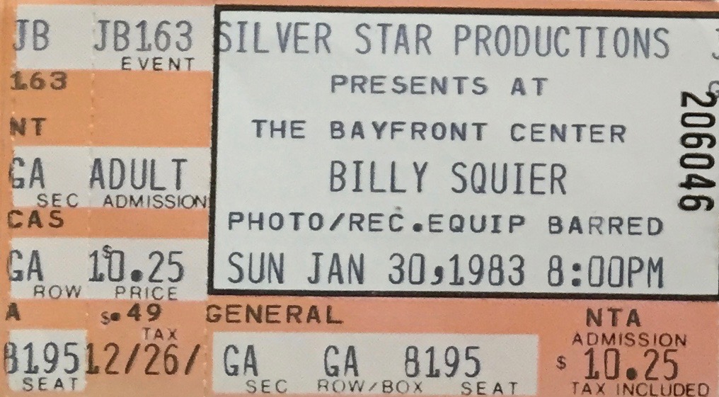 Billy Squier with Saga on 1-30-1983 at the Bayfront Center in St. Petersburg, Florida. Cost $10.25.