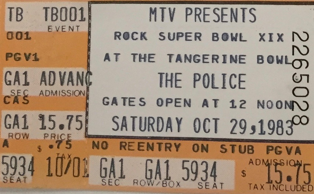 The Police with The Fixx and the Animals on 10-29-1983 at the Tangerine Bowl in Orlando, Florida. Cost $15.75.
