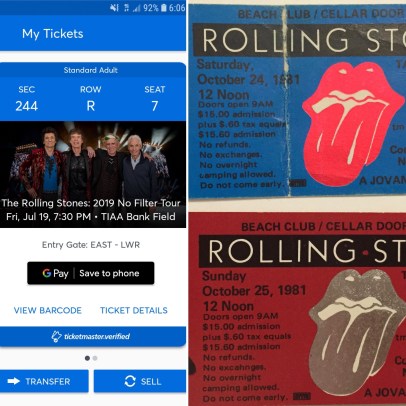 My 2019 digital and 1981 paper Rolling Stones tickets – Jacksonville, Florida and Orlando, Florida