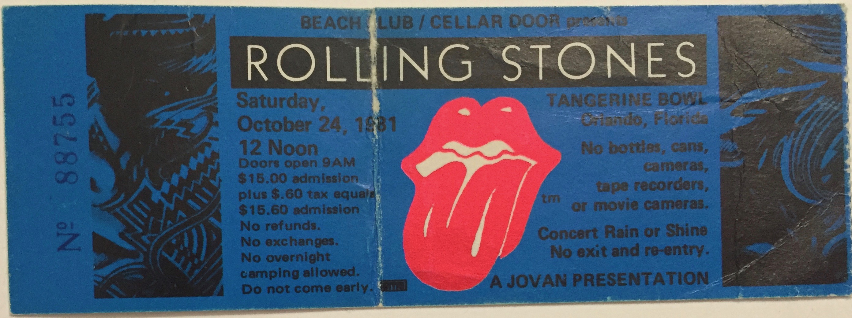 The Rolling Stones with Van Halen and the Henry Paul Band on Saturday 10-24-1981 at the Tangerine Bowl in Orlando, Florida. Cost $15.60.
