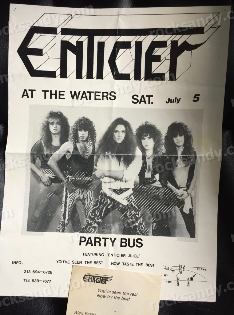 I have no memory of this band, although I do remember going to the Waters Club a few times. Enticier juice lol? Update: Per H’Air Apparent in the comments below, this band featured Pat Guyton (now a well-known fine arts painter) and Marco Forcone before they joined Leatherwolf, which became Hail Mary.