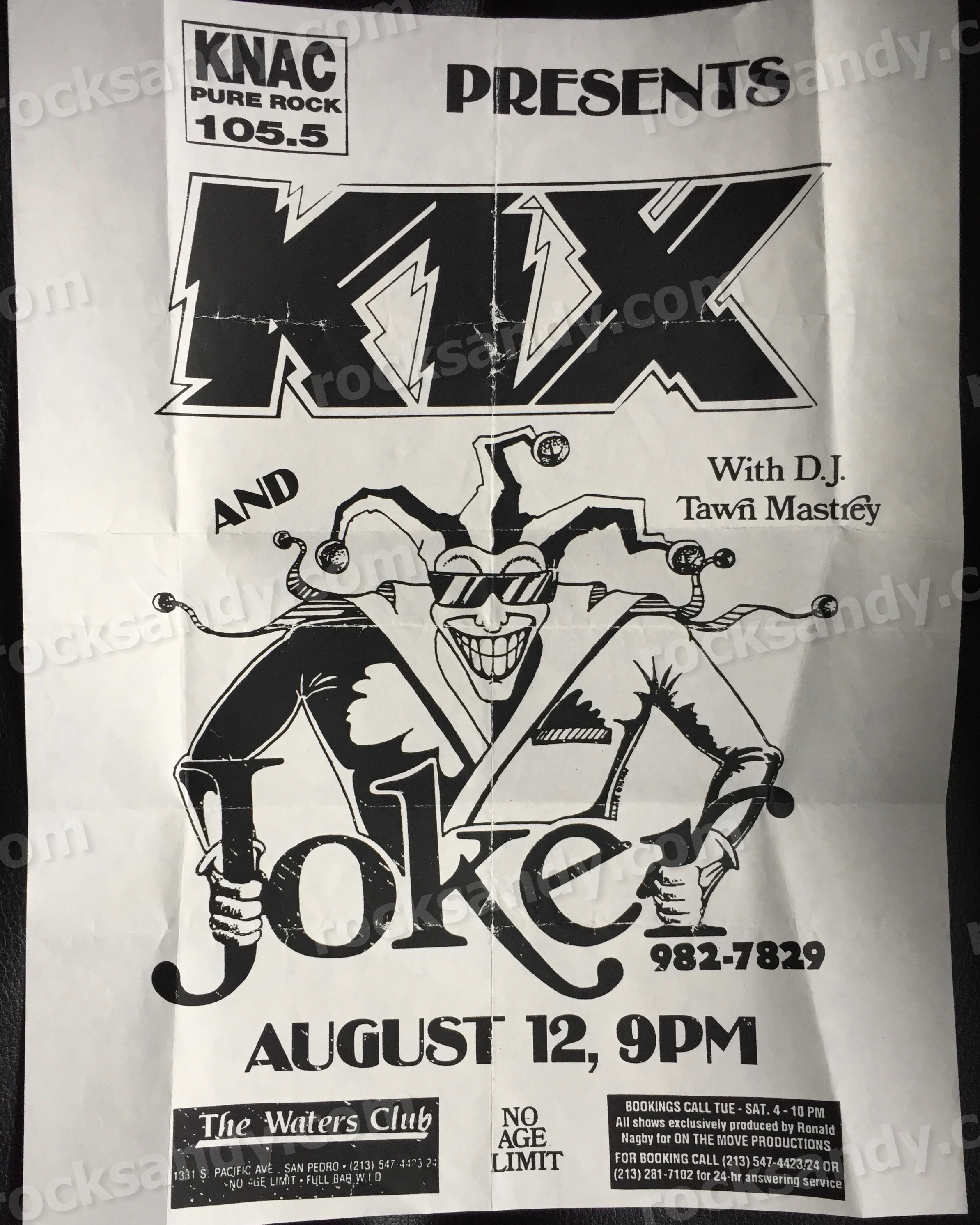 I remember we saw Kix hanging at the Rainbow that week. Tami tells me she clearly remembers Steve Whiteman was wearing red high top Converse in a sea of leather boots lol. Interesting story on DJ Tawn Mastrey at KNAC and Sirius-XM’s Hair Nation at the links. I came up blank looking for a band called Joker.