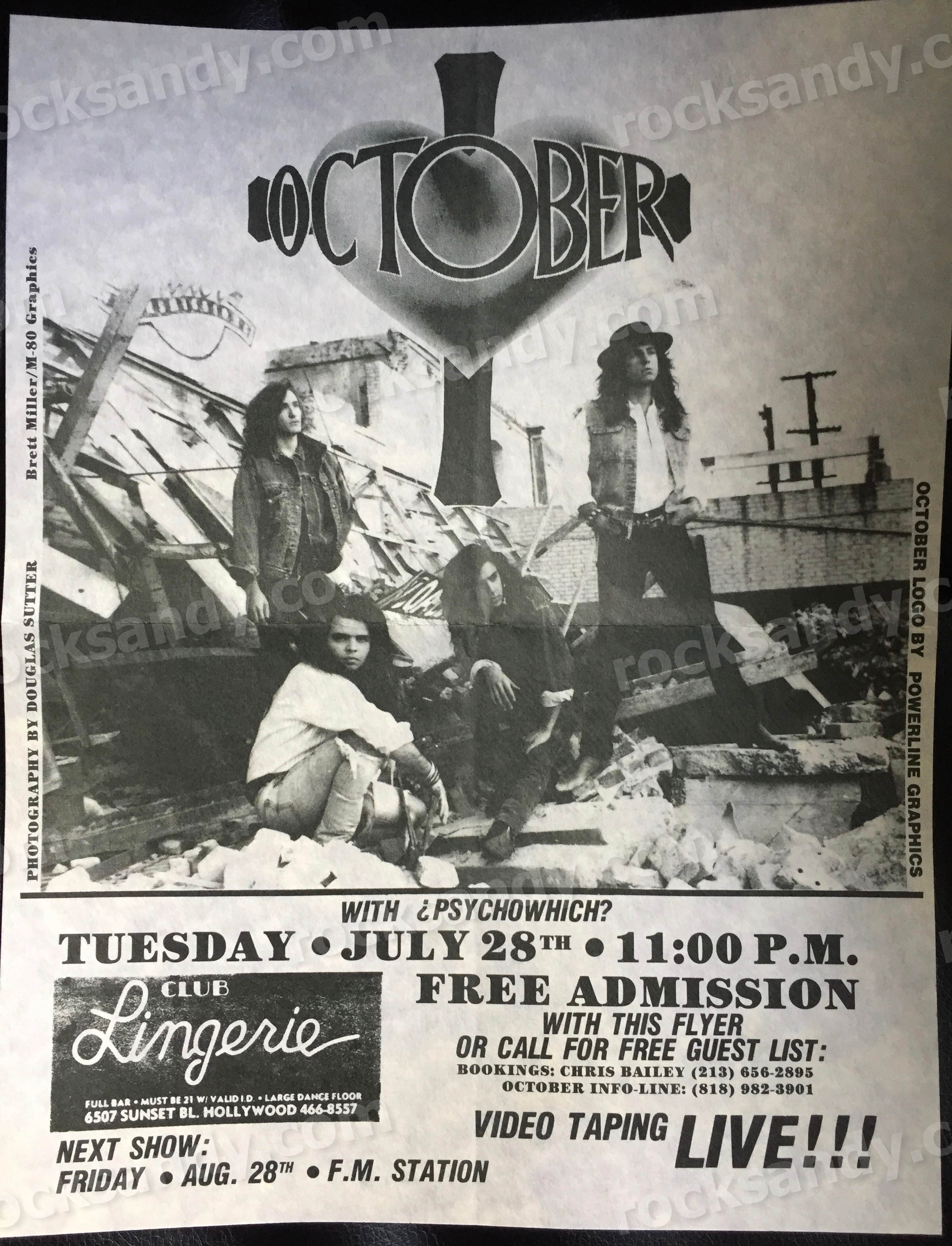 October was my friend (and son’s godfather ;o)) Brett‘s band, and my bff Randee Weiss sang back-up. I don’t remember much about Club Lingerie – it was popular after I moved back to Florida so this flyer must be from the early 1990s.