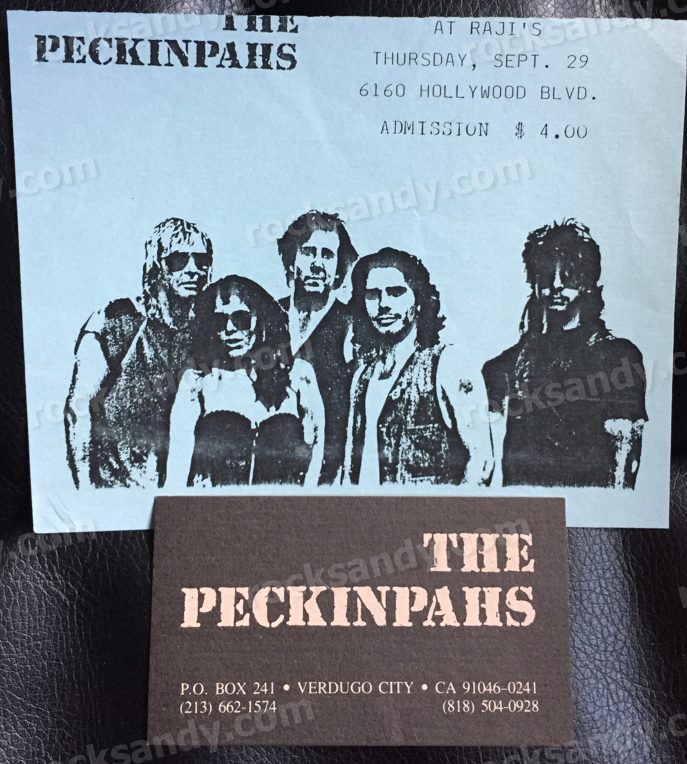 The Peckinpahs would want you know they were not a “hair band” – they played the punk scene. I met the singer when we both worked at a bank in North Hollywood…we met and became good friends after she came up to me and asked if I could see her leg-sleeved tattoos through her black pantyhose. Mind you leg tattoos (particularly on women) were not a dime-a-dozen as they are nowadays, and pantyhose were mandatory office wear back then (ugh). I remember that The Peckinpahs were voted BAM magazine’s best band of 1984 (5?).
