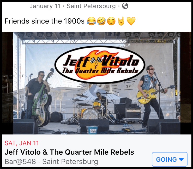 Jeff Vitolo and the Quarter Miles Rebels on 1-11-2020 at Bar @548 in downtown St. Petersburg, Florida. Free show. Good-time rockabilly music. I’ve known Jeff from the Tampa Bay Area Music Scene since the early 1980s, in his RockPalace/Paul Mitchell, Entice, Tyger Tyger, and Mojo Gurus days. Happy to see him still playing around.
