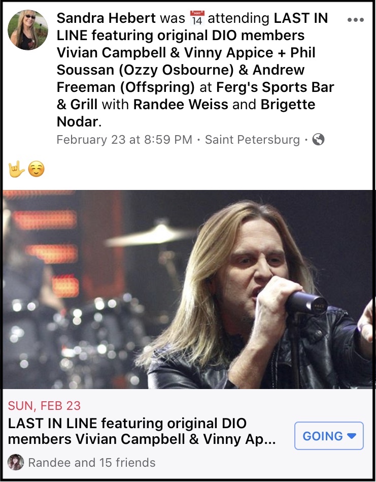 Last in Line on 2-23-2020 at Ferg’s in downtown St. Petersburg, Florida. Groupon VIP cost $19. More on this band in the photo below….