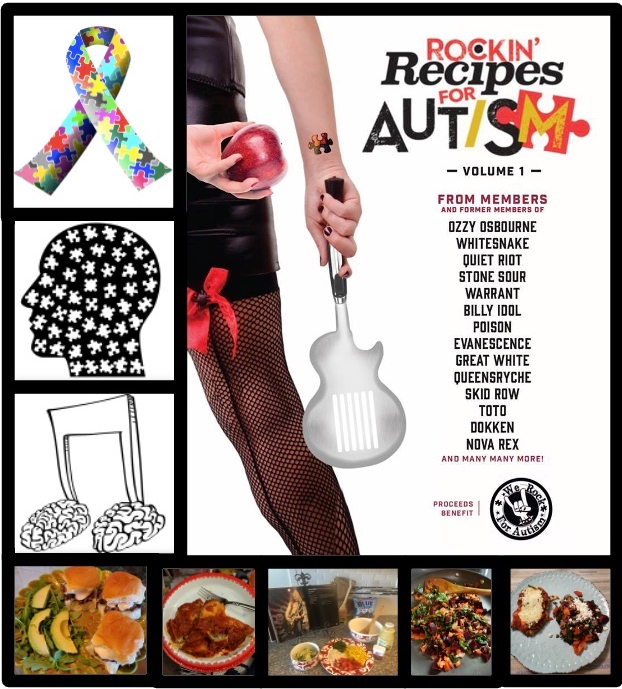 Given the prevalence of autism and the positive results with music therapy, it’s not surprising that many musicians have been touched by it in one way or another, or that autistic musicians have entered the rank of pop culture fame. Nor that numerous hard rock and metal musicians around the country have ties to autism foundations. One of the more recent projects is from fellow Floridian Kenny Wilkerson, bassist for the ’80s era band Nova Rex, who are still playing shows and in high demand. Wilkerson gathered favorite recipes from fellow rockstars and compiled them all in his charitable project cookbook, Rockin’ Recipes for Autism.
