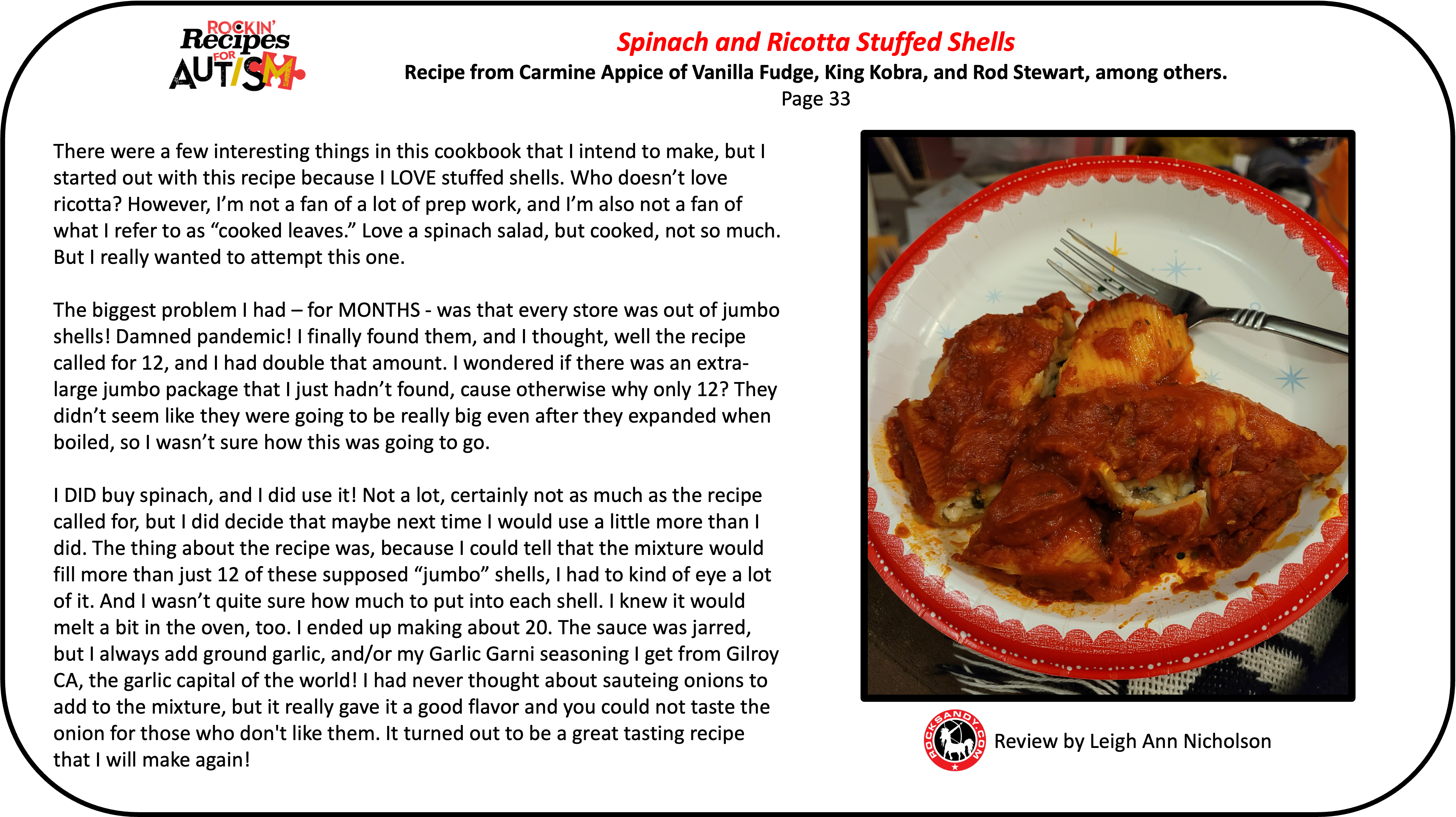 Wilkerson recognizes he was lucky to be able to pursue his musical dreams and meet and work with so many influential rock musicians, and wanted to give back somehow. He reached out to the rock-n-roll community and put together a glossy coffee table-worthy book featuring 57 musicians, including members of Ozzy Osbourne, Poison, Quiet Riot, Stone Sour, Warrant, Whitesnake, Evanescence, and Queensryche. And as you’ve likely noted throughout this post, my friends and I have reviewed a few of the recipes.