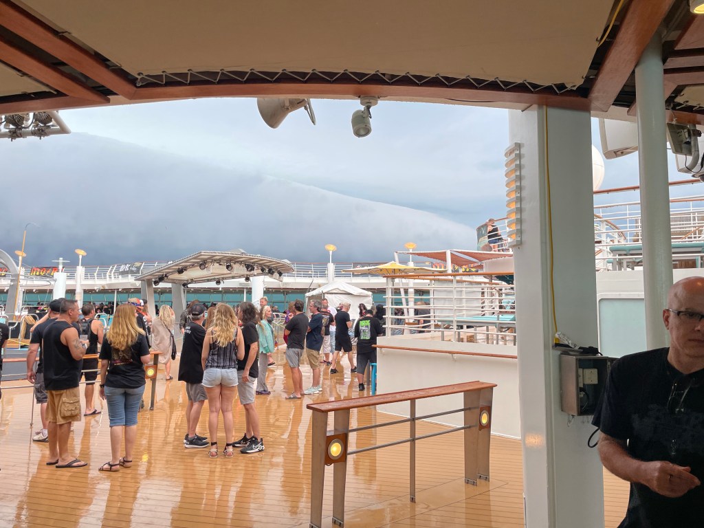 As always, the Monsters of Rock Cruise organizers put on a fun event that went smoothly, despite Mother Nature’s day and a half long tempest. But not a single person was in any less of a mood for it, the party started happily indoors, and the bands were rescheduled smoothly.
