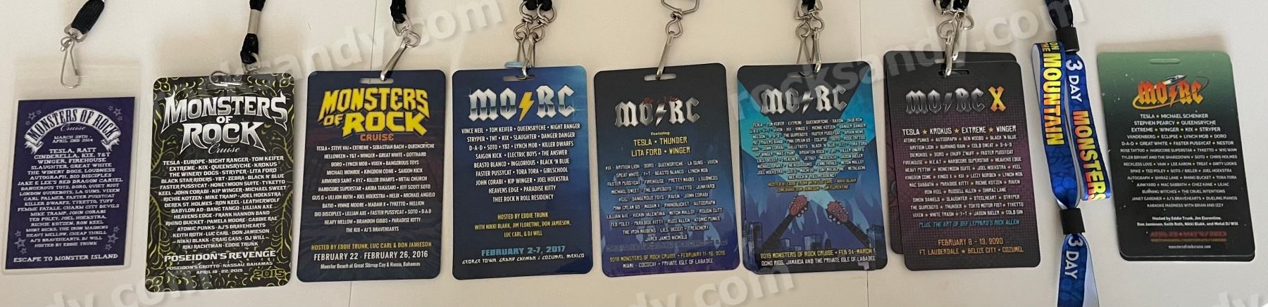 Shout out to the peeps shown in the fun bracelets and pics above; Will To Rock, a great site where you can find more photos and in-depth show reviews; Growin’ Up Rock, a cool podcast; KIS Photography, where you can find some more amazing photos; the Sacramento band Restrayned, who I met in the elevator twice lol; the Quad Cities band St. October, who I also met in the elevator; Pic Guy Guitar Picks, who makes many of the pics you see around the ship, including mine; and a special congrats to Eddie Trunk for his 40 years in music milestone…thanks for keeping it alive, Eddie. Also shout out to Joe Schaeffer Photography and Randy Cook at Horns Raised Photography for letting me use their amazing MORC photos in my posts.
