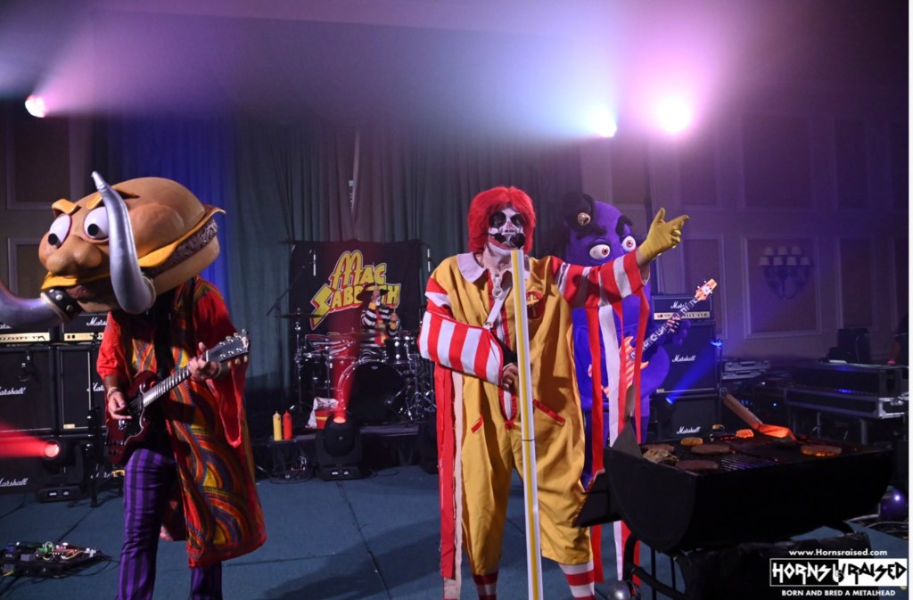 This is a good Black Sabbath tribute band that wears McDonald’s character costumes (i.e., Ronald, Burgler, et al). You’ve got to go see it once. Data From https://www.concertarchives.org/bands/mac-sabbath.