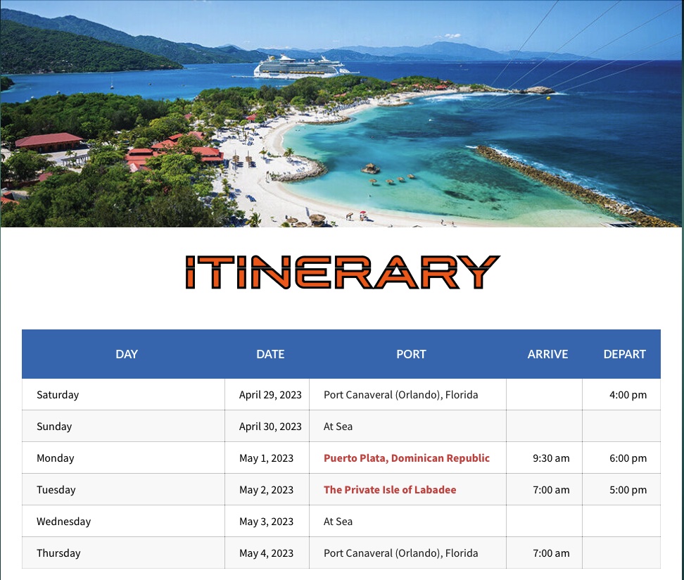 Photo: Monstersofrockcruise.com screenshot of pre-party schedule