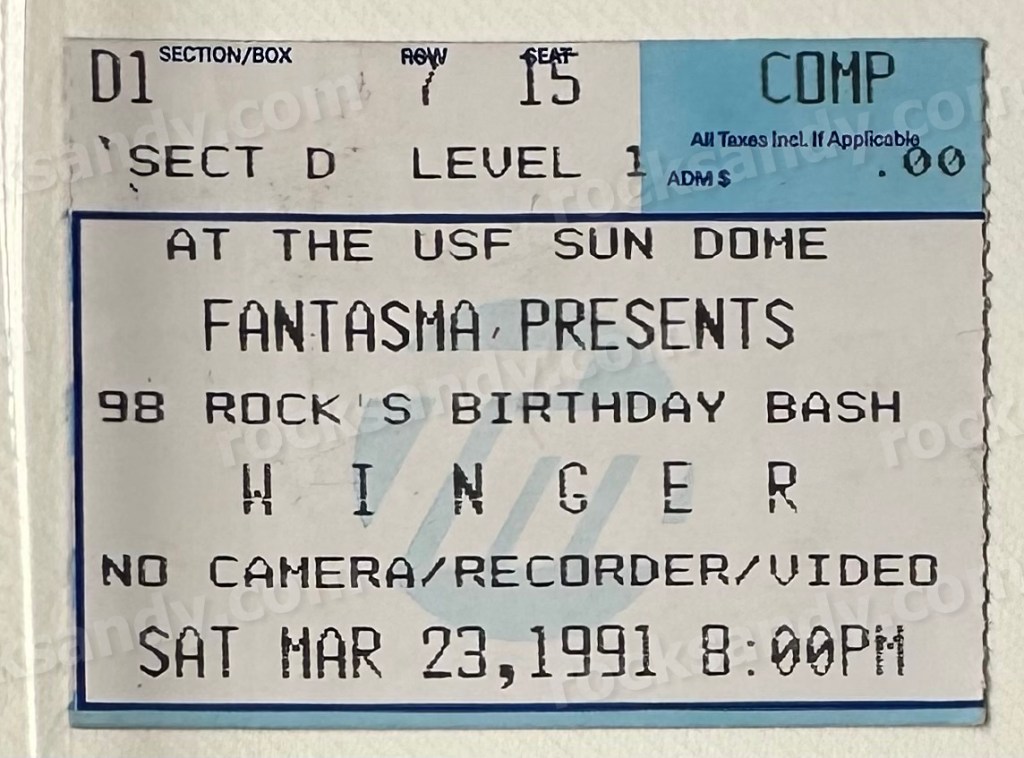 Winger with Extreme and Tangier on 3-23-1991 at the USF Sun Dome in Tampa, Florida. Comped ticket.