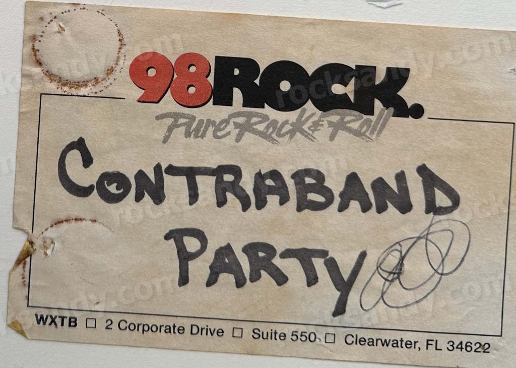 98 Rock radio station backstage pass with “Contraband Party” written on it. This pass could be related to the show above, but I seem to recall Contraband played at the Rock It Club also….if anyone knows.