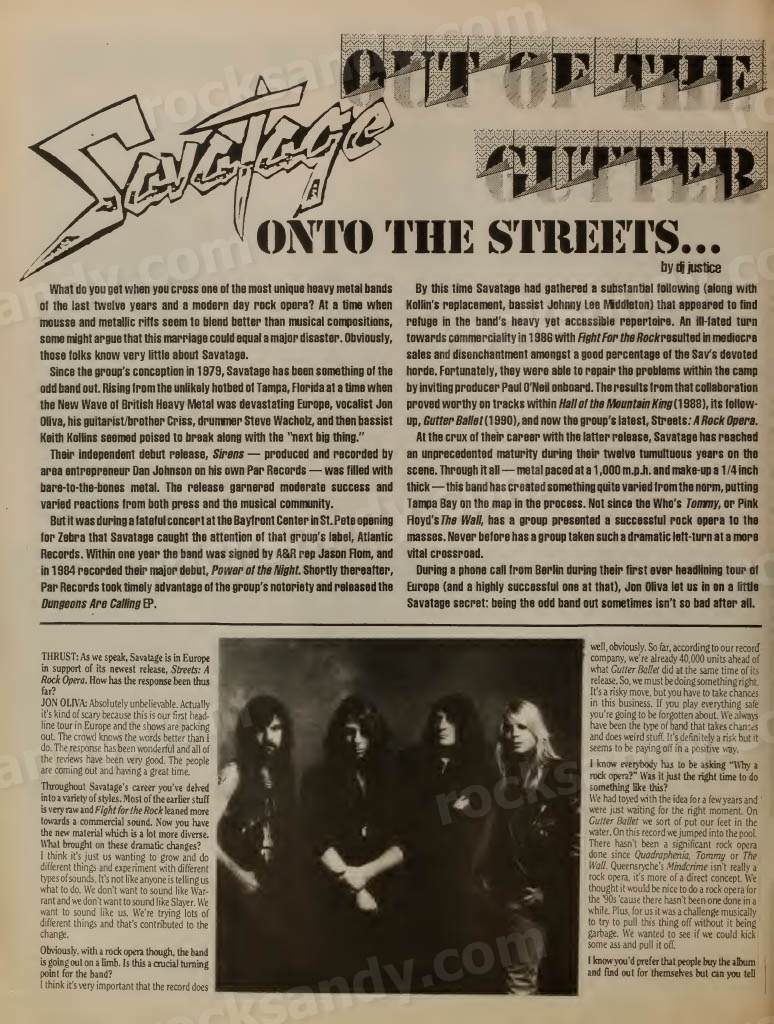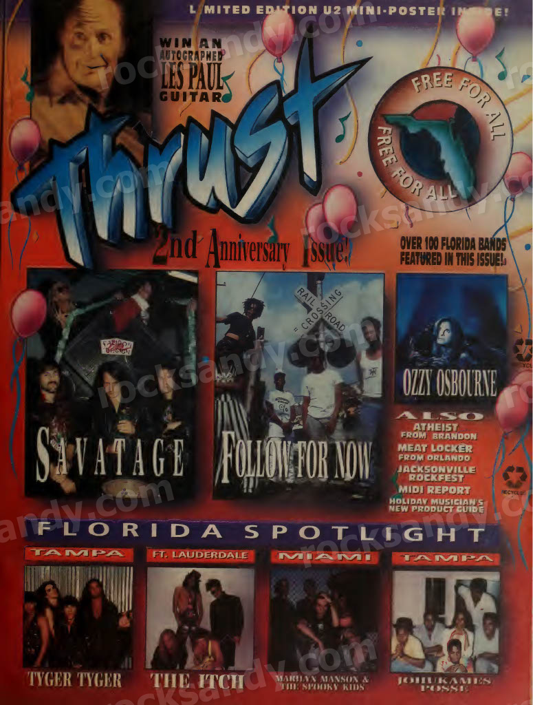 ABOVE: The November/December issue of Thrust featured a variety of artistic: Savatage, Following the Now, Ozzy Osbourne, local favorites Tyger Tyger , The Itch, and Marilyn Manson and the Spooky Kids. I’ve included the Savatage interview, and a Firehouse/Spec’s Music advertisement for their self-titled debut album.