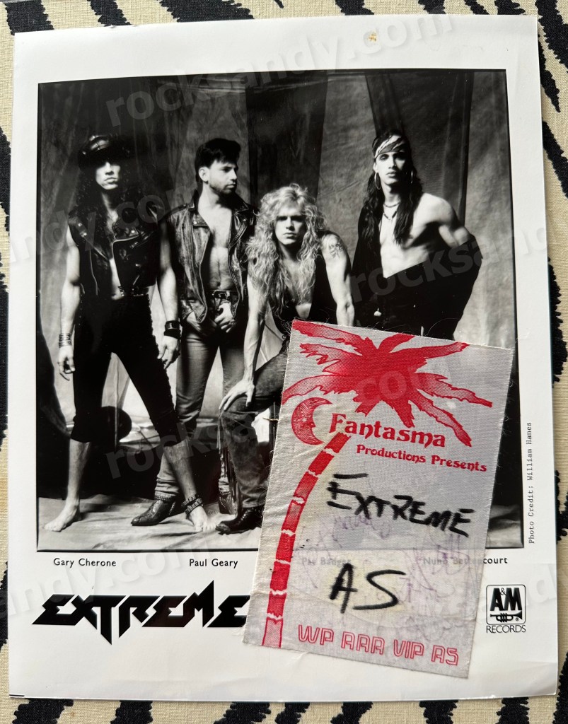 ABOVE: This promo shot is for Extreme‘s 1990 release Pornograffitti, but I think the autographed backstage pass is from the 3-23-1991 Winger, Extreme, and Tangier show at the USF Sun Dome in Tampa, Florida.